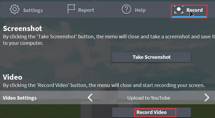 Schritt 1. Gehen Sie in das Spiel und wählen Sie im Menü oben links die Registerkarte Aufnahme.