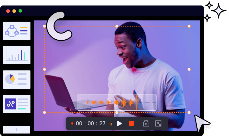 Der Mac Screen Recorder ermöglicht es Ihnen, sich selbst mit hoher Qualität über die Webcam zu filmen. Sie können Bild-im-Bild-Videos machen - halten Sie einfach Ihre Facecam in die Ecke der Bildschirmaufnahme.