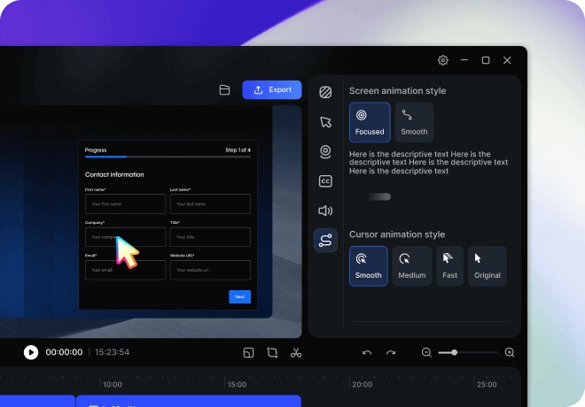 Yes. We offer a variety of cursor and screen motion effects to make your videos smoother and more engaging. You can also adjust cursor size and style anytime.