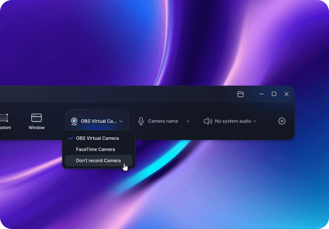 Simple, but powerful. Record webcam, microphone, and system audio.
