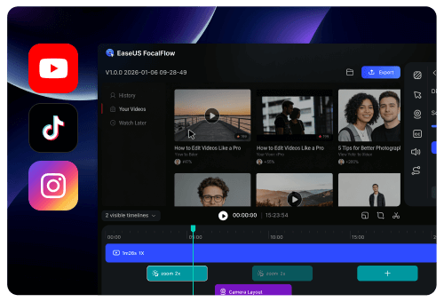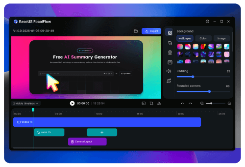 FocalFlow is our latest screen recording tool designed to create stunning videos with smart auto-zoom, one-click polish, dynamic layouts, and smooth animations—perfect for anyone looking to produce high-quality, engaging content.